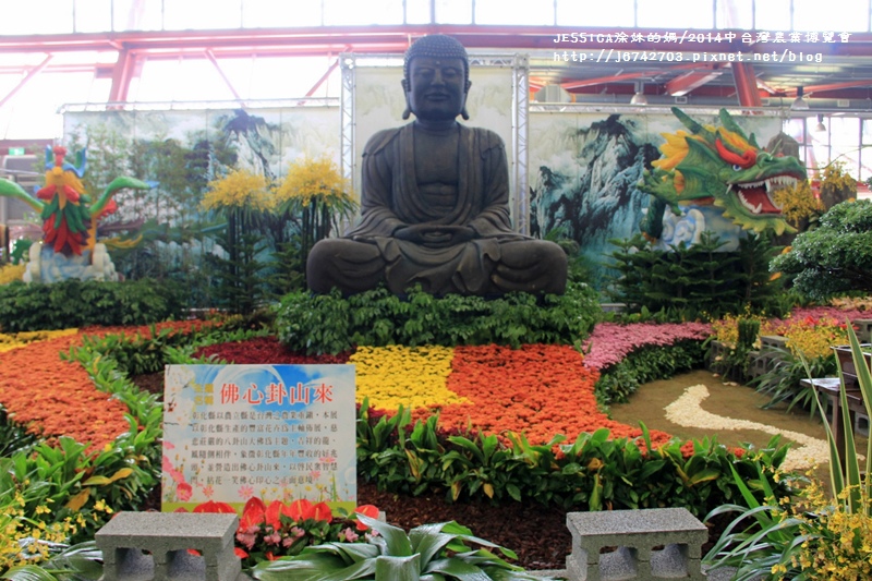策展內容:以本縣花卉為主軸佈展,八卦山大佛為主題,吉祥的龍、鳳隨側相伴,象徵彰化縣年年豐收的好兆頭
