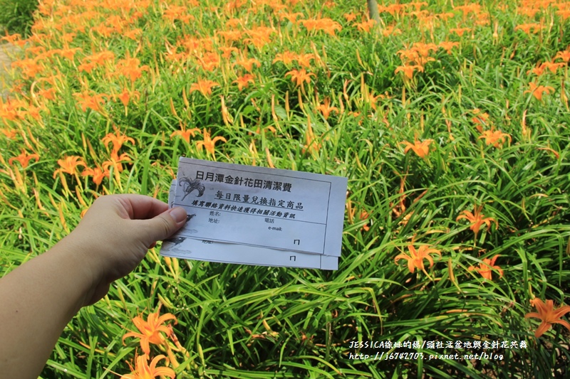 因為是私人田地所以賞金針花要收門票了唷,不過門票可以抵消費,離開時我們帶了兩包新鮮金針花回家加菜!