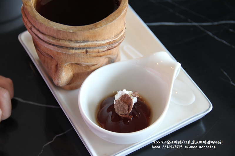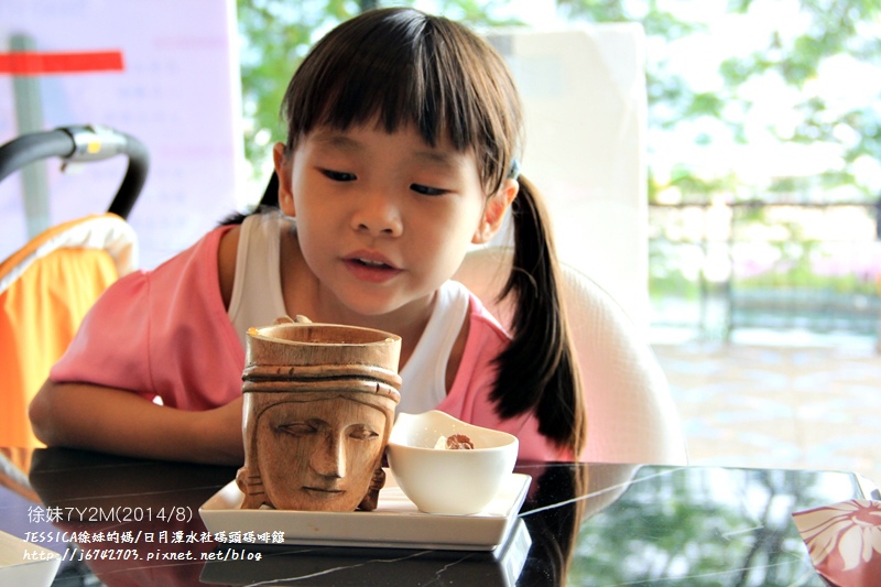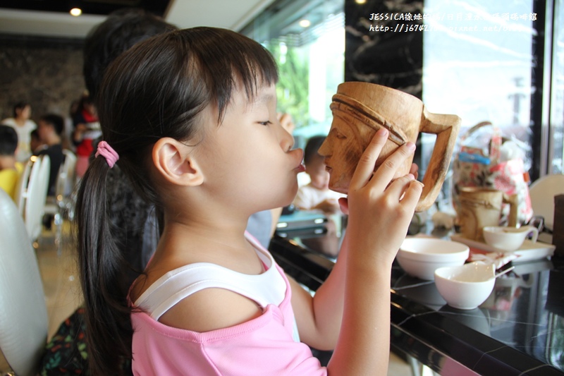 先送上來的附餐紅茶,用這雕有人像的木杯裝盛喝起來挺有感覺!