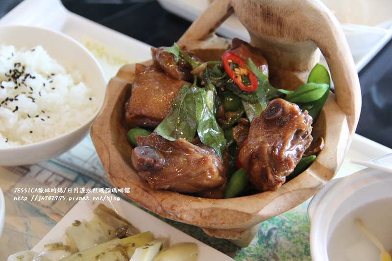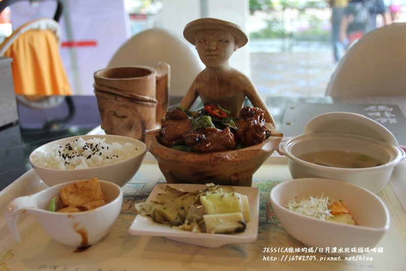 水社碼頭旁的"碼頭飯店"設有餐廳"碼啡館"於是決定在此用餐並一併欣賞這湖光山色!