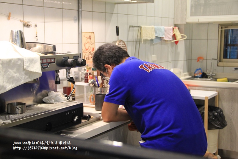 圖為吉米大哥認真畫咖啡人像的背影~有沒有給他很.......( 論真 )呢 ^^
