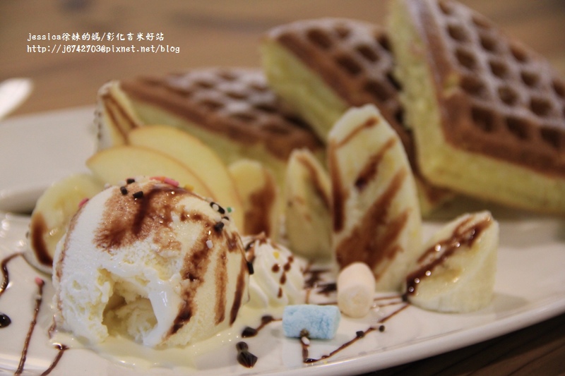 等了一下下冰淇淋鬆餅先送上來囉! 從徐妹表情就知道她有多開心!