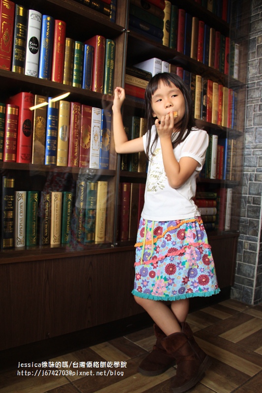 這些看不懂的書拍起照來還真漂亮真有FU!小妞手裡還有試吃的餅乾! 哈哈!