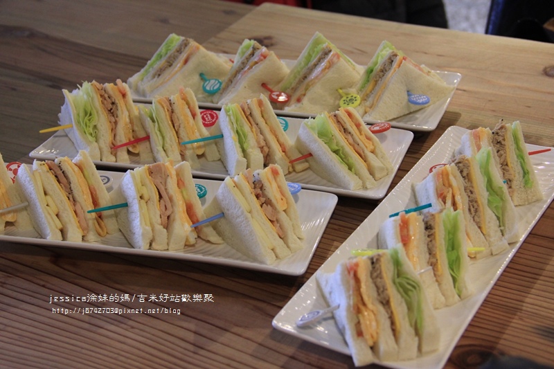 這樣排開有沒有很壯觀? 說真的這些三明治很好吃,土司也很軟.....料多味美很實在!