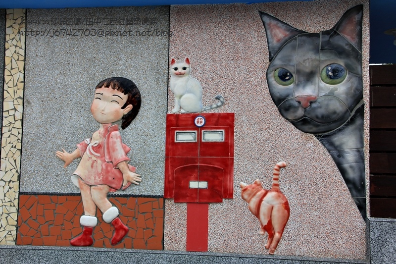 拐了彎過來,這面牆上也有窯燒拼貼而成的貓咪和小女孩,這樣就不難想像要完成這些作品需要多少時間了!!!