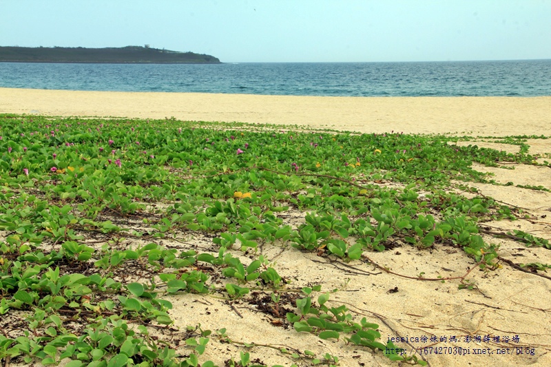 同樣有翠綠的馬鞍藤,對面的小島曾有軍營,徐拔同事看著很有感觸^^"