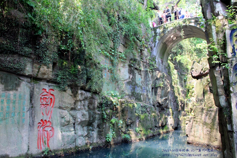 劍池是位於虎丘山上的水池,水池狹窄,但兩側有峭壁,上方有石橋連通