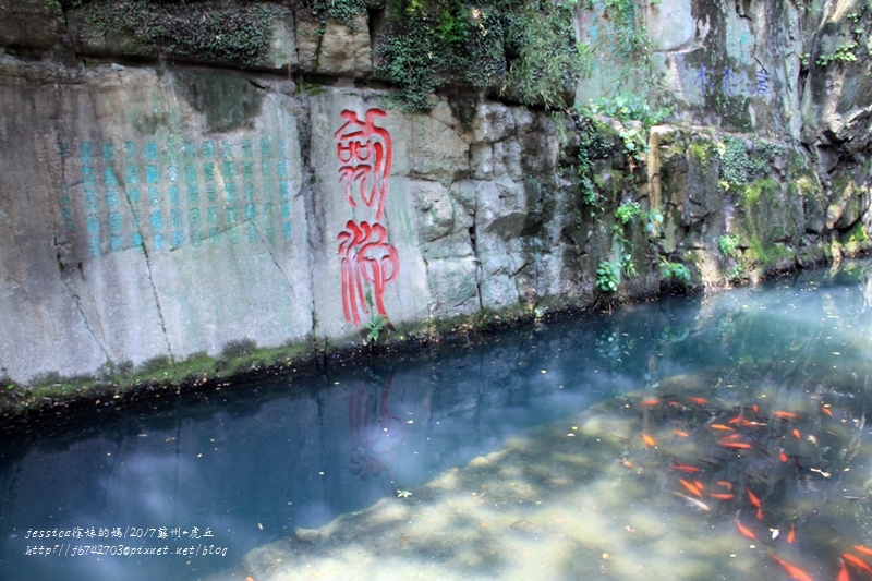 二個紅色的字體是"劍池",傳說這是我國東晉著名書法家王羲之書寫的