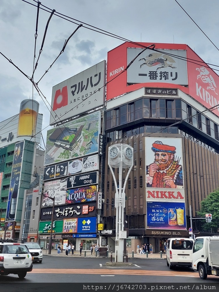 札幌薄野是很熱鬧的區域,招牌打卡點很醒目,