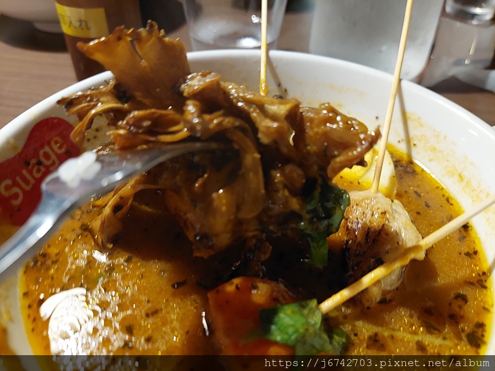 Suage+湯咖哩的內容物以"串燒"方式呈現