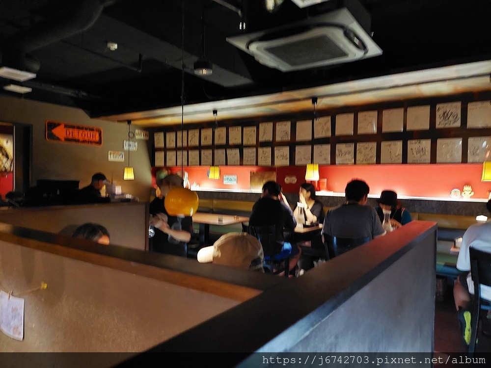 牆上貼滿許多人的簽名板,店家有點像小酒館一樣的很有氣氛(燈光美)