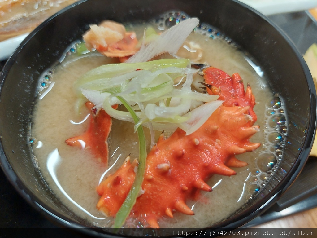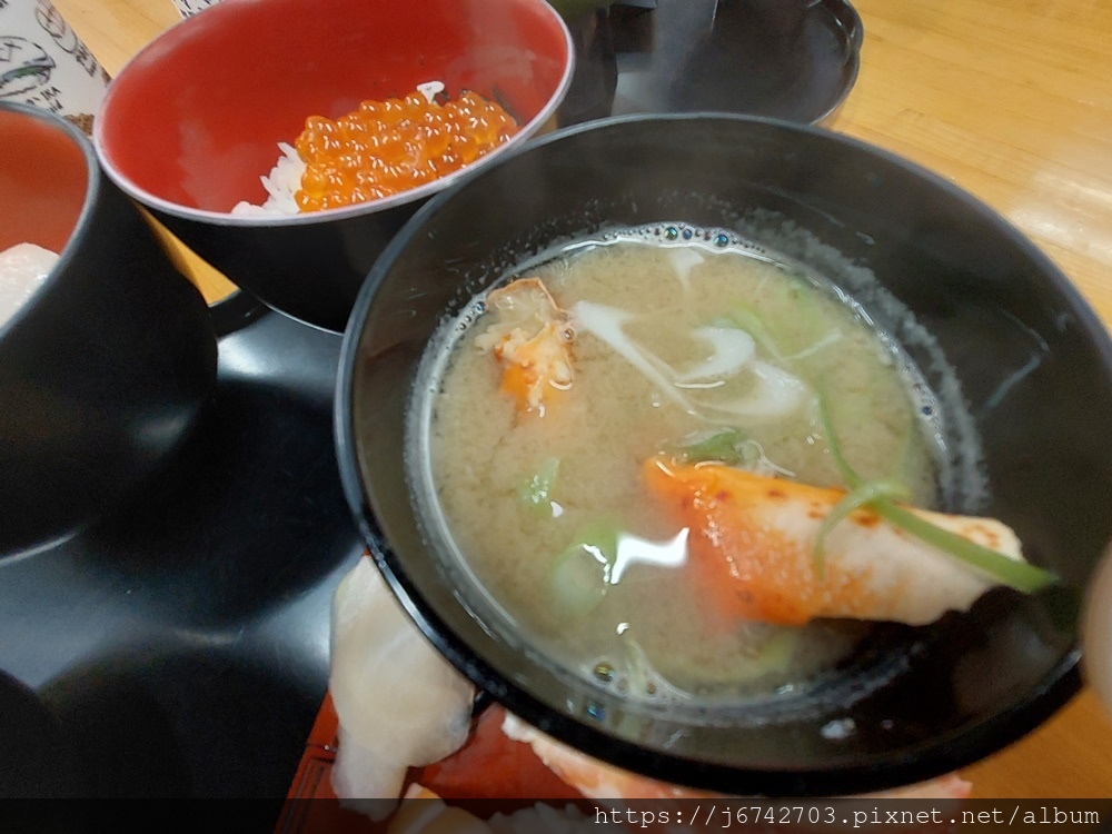 小妞點了迷你五膳,有三個海鮮蓋飯 握壽司和味噌蟹腳湯