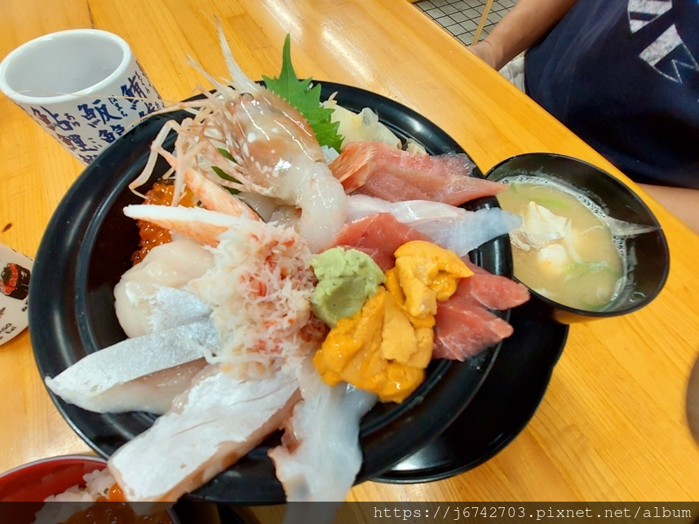 內容看起來也很棒,有新鮮蟹肉 海膽 魚卵 ?? 蝦很大隻,還有干貝和生魚片