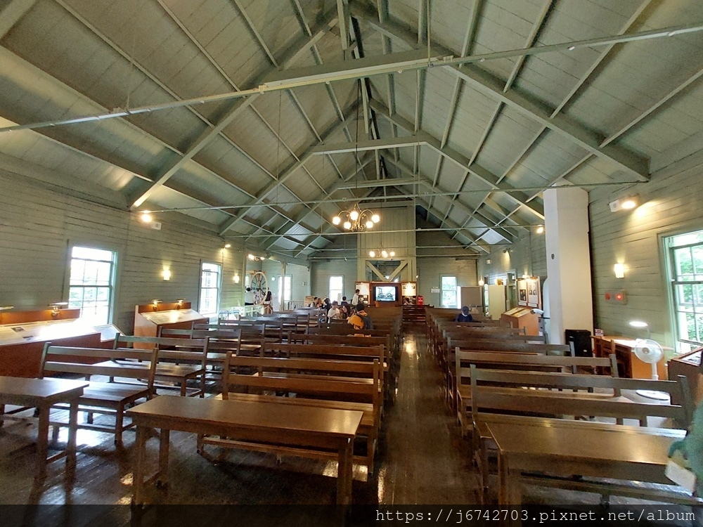 二樓是復原當時講堂的大廳,夜間用於舉辦各種活動或音樂會,我們在講台上拍照留念!