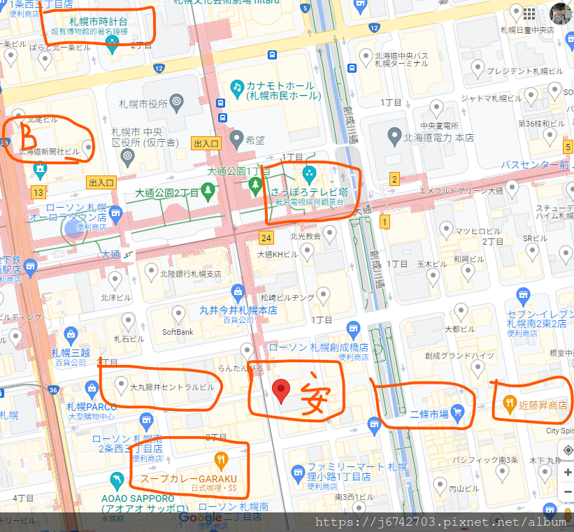 下圖是今天的各個行程,還少圈選了最後一個狸小路逛街行程