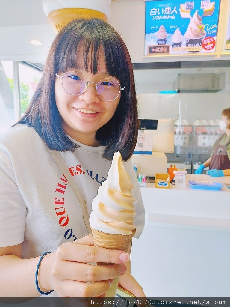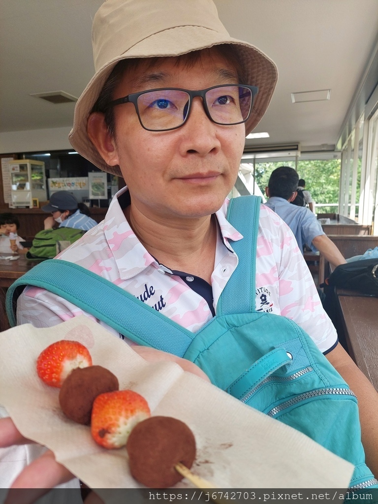 於是我們買了草莓大福串,小妞選了冰淇淋(她不愛草莓)來消消暑