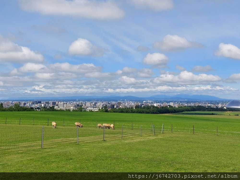 接著移動到展望台內最著名的大草原,在這片大草原可以看到很厲害的札幌巨蛋(找影片介紹就會知道有多厲害^^")